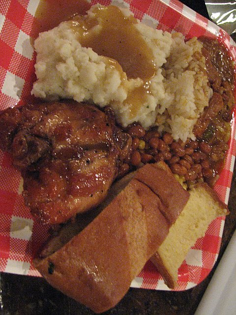 Dinner was buffet style BBQ. There was mashed potatoes with gravy, an amazing chicken curry with rice, baked beans, corn, garlic bread, chili, and some other stuff I didn’t even try.