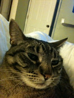 This morning I was served breakfast in bed! It was quite the pleasant surprise. π Unfortunately the picture didn’t turn out, but I did get one of my kitty.